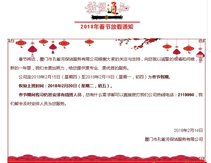 2018-03-09查看詳情>>[圖文]2018年春節(jié)放假通知